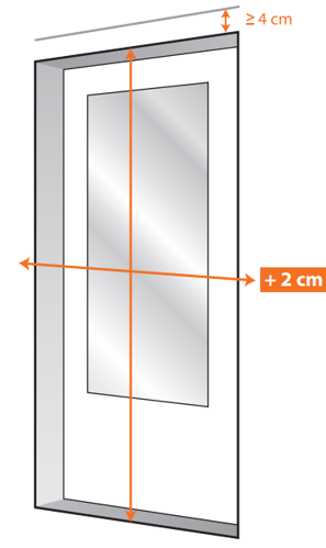 Let op: wil je de rail op het kozijn hangen? Dan heb je minimaal 4 centimeter ruimte nodig. Deze ruimte heb je nodig om de ophangrail te kunnen plaatsen. De 4 centimeter tel je niet op bij het totaal.